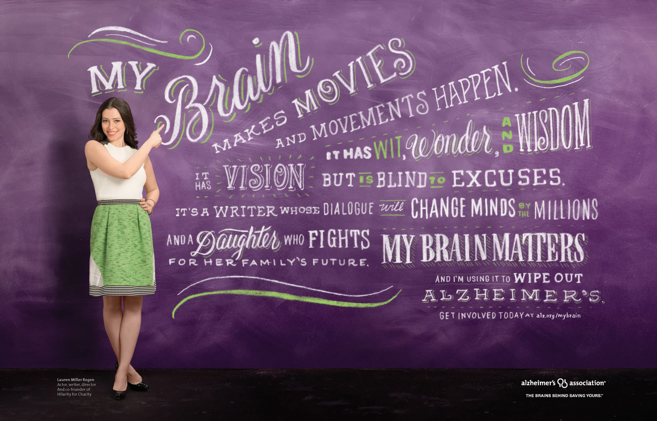 Of the 5 million American's living with Alzheimer's Disease, 3.2 million of them are women. With this fact as motivation, the Alzheimer's Association looked to us to create a campaign that celebrated women's brains and utilized celebrities they have relationships with, such as Lauren Miller, Maria Shriver and Shonda Rhimes.